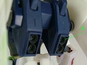 Aのノズルは簡易旋盤加工し、シャープな印象にしています。基本構成は変えていません。バインダー接続部はモールドをきり飛ばし、写真にあるようにバーニアパーツをフリー接続しています。