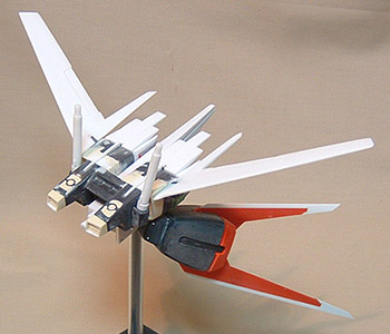 エールユニットは、大半がプラバンで改造しています。パテも軽量タイプを。でないと、いくらおもりを仕込んでも意味ないですからね。かなり軽く上がりました。